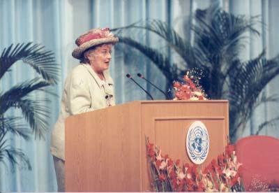 Some wonder how I have kept going for so long and how I manage to remain optimistic. When governments were removing the brackets from the document over the last two weeks, the French tested another nuclear weapon in the Pacific, NATO was bombing Bosnia and the Serbs were shelling Sarajevo. Refugee camps overflowed in too many places around this globe. Conditions for women on factory floors did not change. Women died in childbirth and in their homes. Hunger gnawed at the bellies of millions. The world went on, in its downward spiral we all know all too well.
