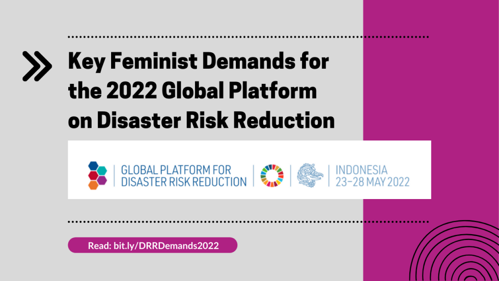 WEDO is co-leading engagement of the Women’s Major Group within the Stakeholder Engagement Mechanism of the GPDRR—representing a moment for feminist organizations to come together in a stronger collective voice ahead of the mid-term review of the Sendai Framework.