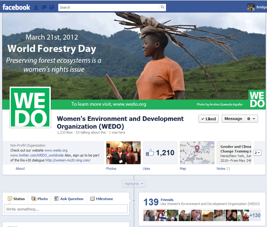 When our colleague Andrea visited Uganda and Cameroon for WEDO’s work on forestry issues, she captured some wonderful images of the people she worked with there. Alongside other photos from her work, WEDO has put together some cover photos for your Facebook Timeline so you can show your support of women’s rights and environmental sustainability. Let us know if you use them, and we will highlight you on our wall!
